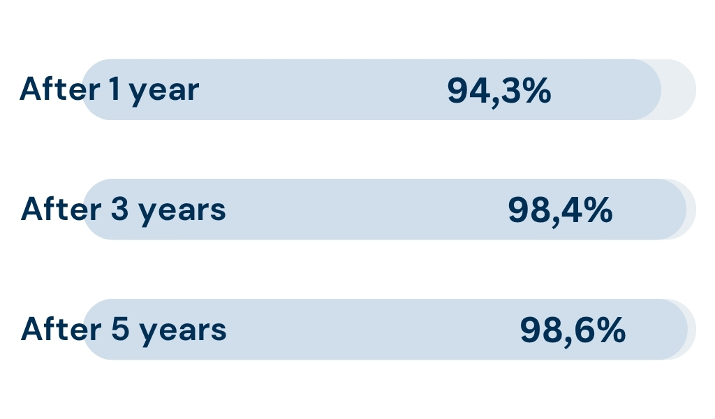 The percentages relating to employment opportunities refer to graduates of 2023 (if 1 year after graduation), 2021 (if 3 years after graduation) and 2019 (if 5 years after graduation).