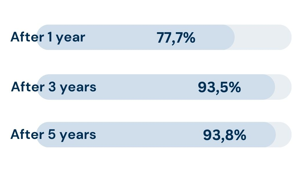The percentages relating to employment opportunities refer to graduates of 2023 (if 1 year after graduation), 2021 (if 3 years after graduation) and 2019 (if 5 years after graduation).