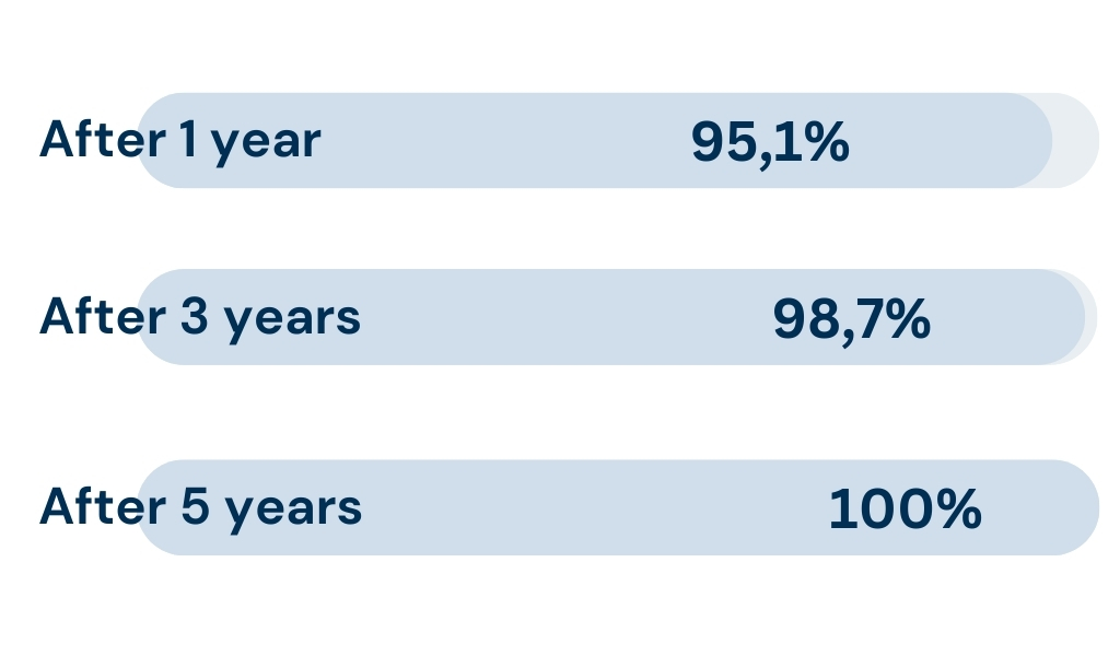 The percentages relating to employment opportunities refer to graduates of 2023 (if 1 year after graduation), 2021 (if 3 years after graduation) and 2019 (if 5 years after graduation).