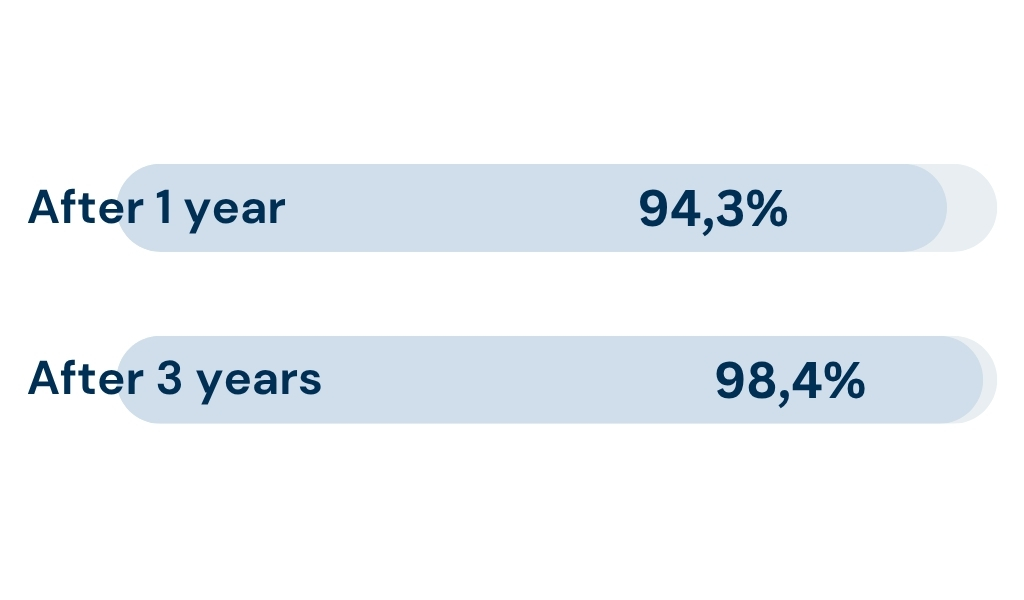 The percentages relating to employment opportunities refer to graduates of 2023 (if 1 year after graduation), 2021 (if 3 years after graduation) and 2019 (if 5 years after graduation).