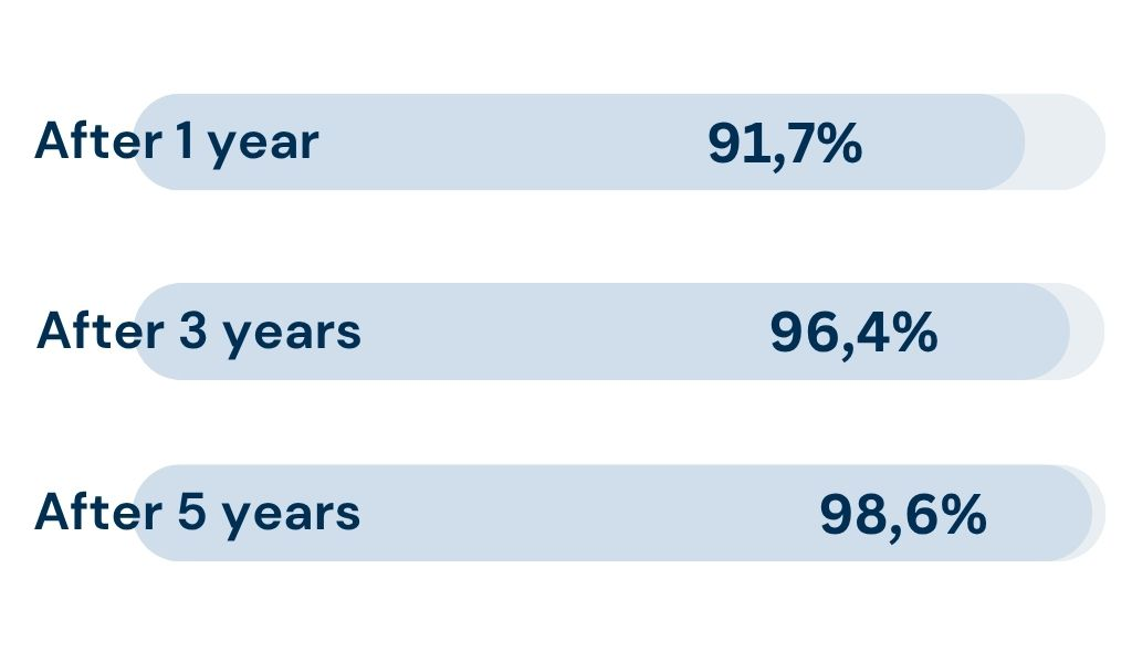 The percentages relating to employment opportunities refer to graduates in 2023 (if 1 year after graduation), 2021 (if 3 years after graduation) and 2019 (if 5 years old).