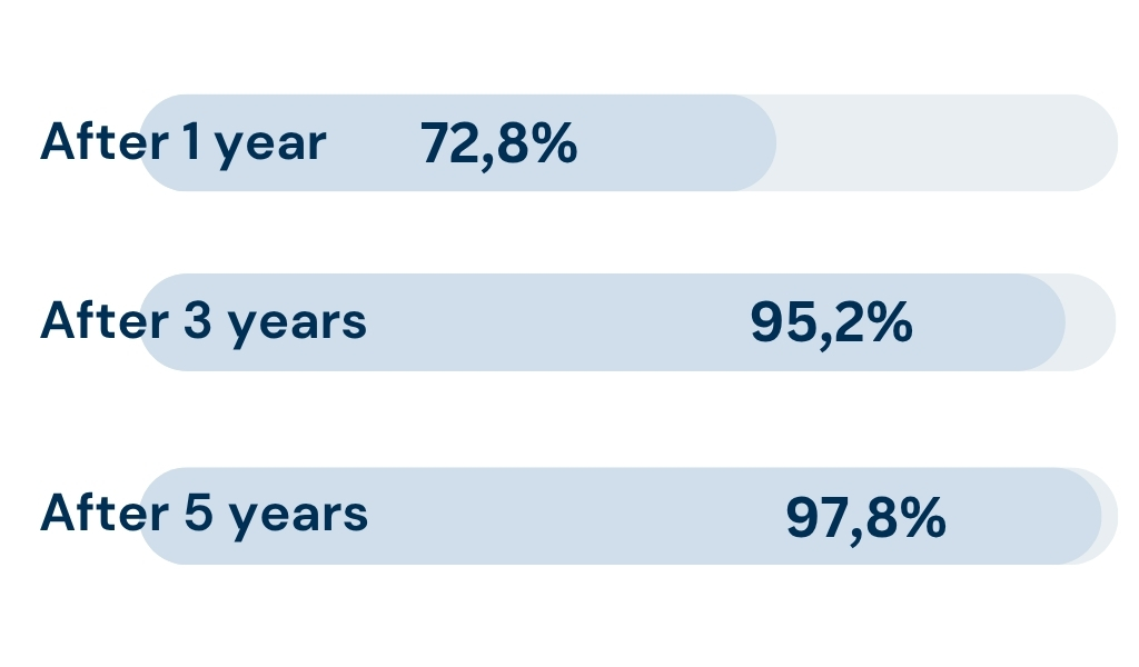 The percentages relating to employment opportunities refer to graduates of 2023 (if 1 year after graduation), 2021 (if 3 years after graduation) and 2019 (if 5 years after graduation).