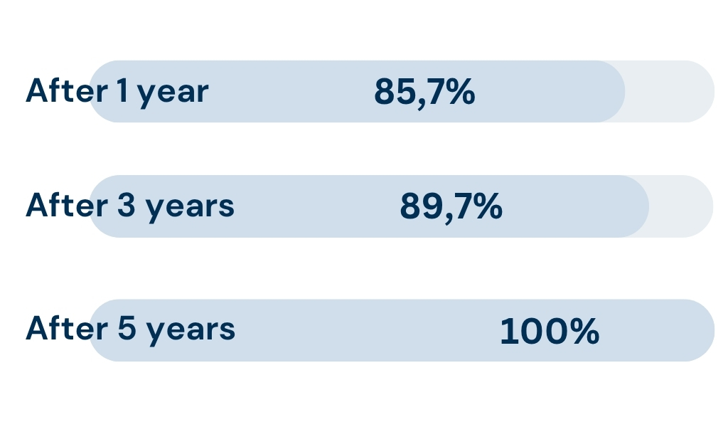 The percentages relating to employment opportunities refer to graduates of 2021 (if 1 year after graduation), 2019 (if 3 years after graduation) and 2017 (if 5 years after graduation).