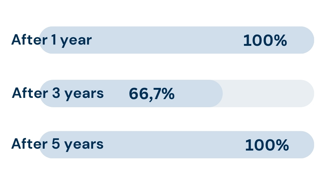The percentages relating to employment opportunities refer to graduates of 2023 (if 1 year after graduation), 2021 (if 3 years after graduation) and 2019 (if 5 years after graduation).