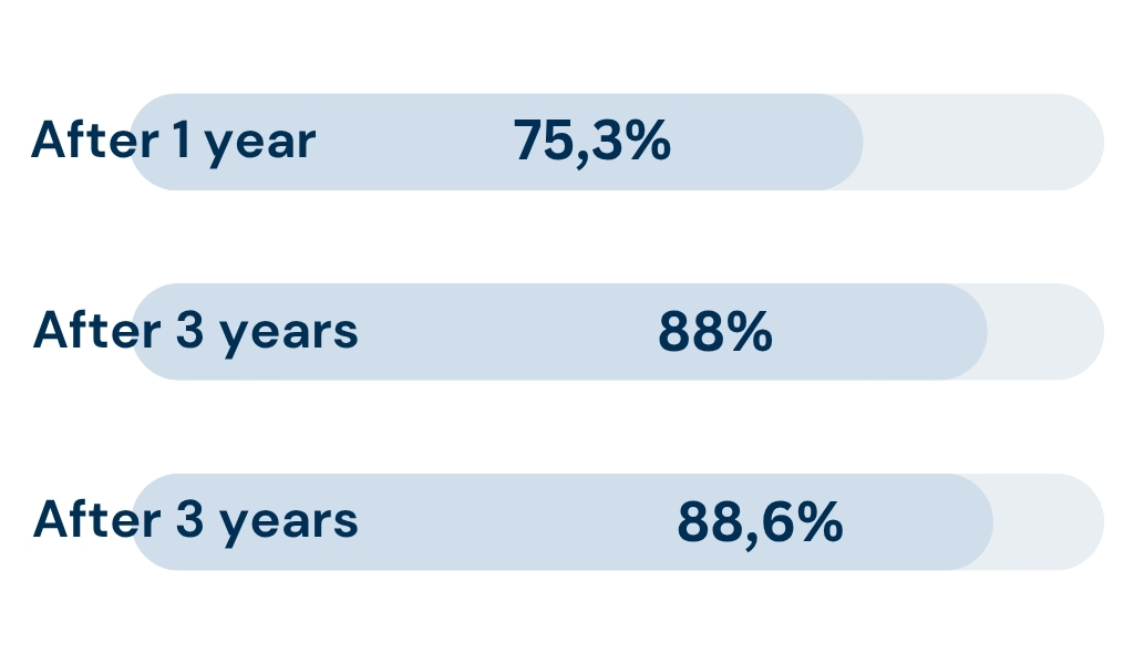The percentages relating to employment opportunities refer to graduates of 2023 (if 1 year after graduation), 2021 (if 3 years after graduation) and 2019 (if 5 years after graduation).