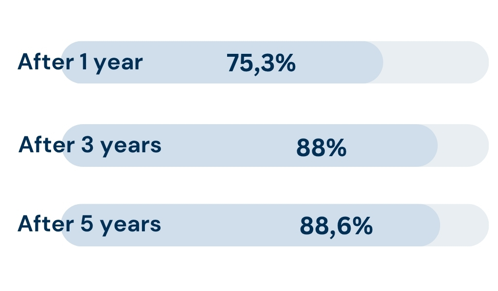 The percentages relating to employment opportunities refer to graduates of 2023 (if 1 year after graduation), 2021 (if 3 years after graduation) and 2019 (if 5 years after graduation).