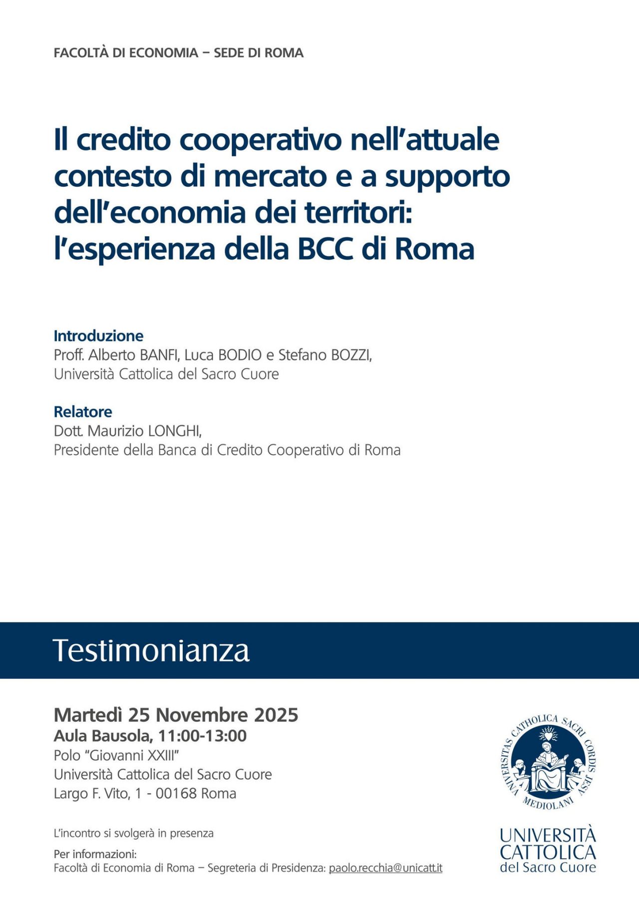 Il credito cooperativo nell’attuale contesto di mercato e a supporto dell’economia dei territori: l’esperienza della BCC di Roma