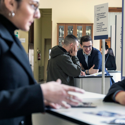 ● Desk informativi: per scoprire le opportunità e i servizi offerti dall’Ateneo (Cattolica International, EDUCatt - l’ente per il diritto allo studio universitario, Servizi per l’inclusione, Stage & Placement)