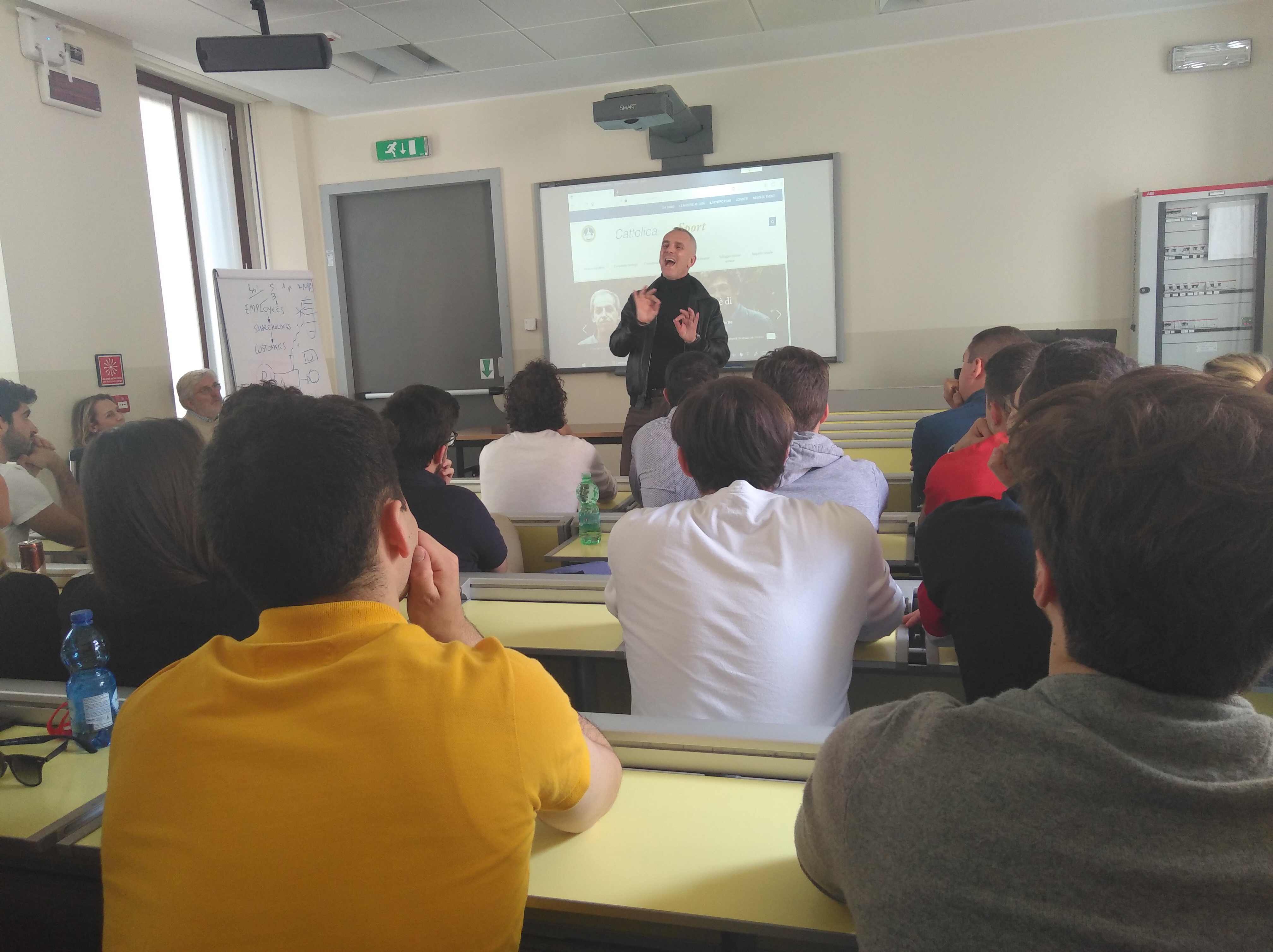 Un maglione a collo alto, la giacca di pelle, gli occhiali da sole tra i capelli. «Avete domande? Sono a vostra disposizione», dice. «Per tutti gli appassionati, Buffa rappresenta un’icona del racconto sportivo: fargli domande e chiedergli consigli preziosi è stata un’occasione irripetibile, unica», commenta Matteo Sartore, uno degli studenti. «È stato un privilegio e un sogno che si è avverato – continua il suo compagno di corso, Giovanni D’Alessandria –, uno dei momenti del Master che più aspettavo fin dall’inizio. Ho visto tutti i suoi speciali dedicati allo sport, sono andato tante volte a teatro, ma mai mi era capitato di vivere un’esperienza simile». «La data di questa lezione era cerchiata da tempo sul calendario – commenta Filippo Mattioli –, un altro studente della seconda edizione del Master. Non mi ricordo di essere mai stato così puntuale a lezione, ma non ero il solo. Mezz’ora prima dell’inizio, eravamo già tutti presenti».