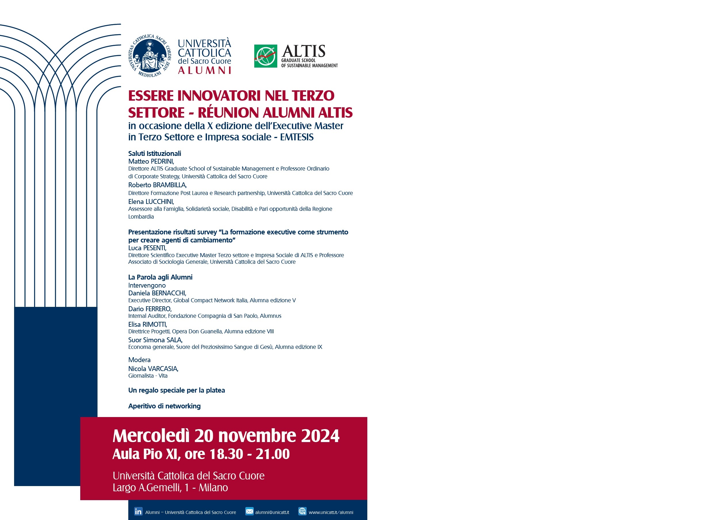 Presentazione dell'offerta formativa Master, Scuole di Specializzazione, Dottorati e corsi di Formazione continua: scopri le iniziative, incontra i coordinatori, esplora le opportunità e le agevolazioni disponibili.