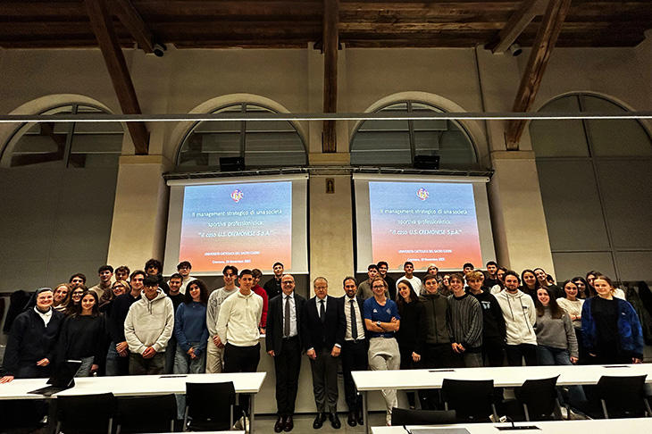 «Per una città come Cremona che ha due squadre in Serie A, la Cremonese e Vanoli Basket, poter parlare di aziende che fanno sport a livello professionistico è una grandissima opportunità per i giovani, perché tutto ciò si traduce in persone, competenze ma anche possibilità di fare esperienza per chi vuole crescere» racconta Fabio Antoldi, docente di Strategia aziendale e direttore del Centro di ricerca per lo sviluppo imprenditoriale (Cersi). «Siamo convinti che sia estremamente utile far conoscere storie di valore e far incontrare i protagonisti di queste storie ai nostri studenti. Perché, al di là dei modelli e della teoria, acquisiscano nuove competenze anche ragionando insieme a manager, imprenditori e professionisti».