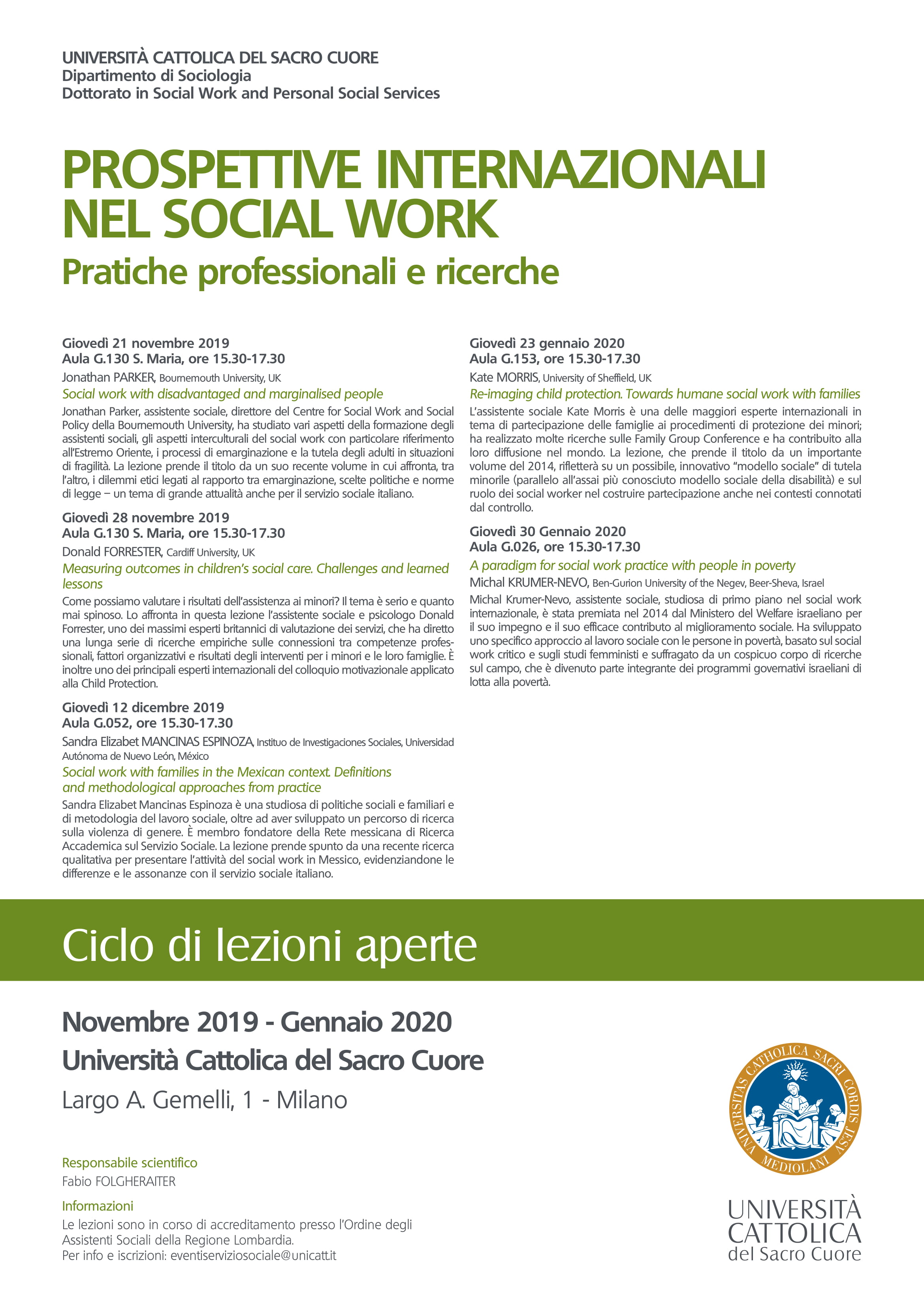 Università Cattolica, Aula G.026, largo A. Gemelli, 1 Milano