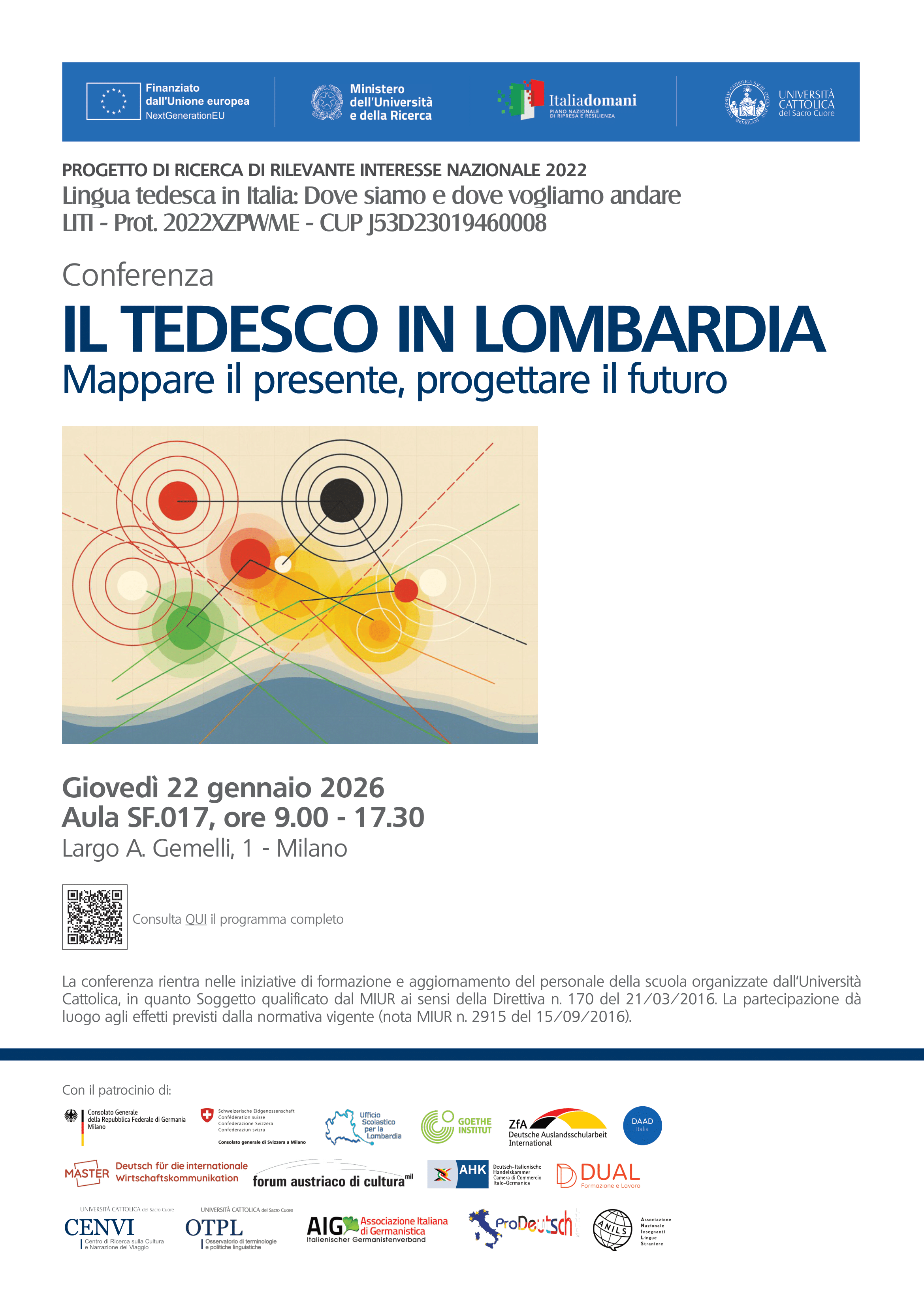 Si terrà il 22 gennaio 2026 la conferenza Il tedesco in Lombardia: mappare il presente, progettare il futuro, che esplorerà la situazione attuale e le prospettive future della lingua tedesca nei contesti educativo, culturale ed economico della Lombardia.